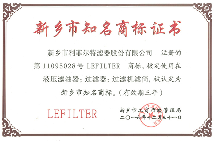 恭祝我司荣获新乡市知名商标荣誉称号_新乡市风暴娱乐滤器股份有限公司