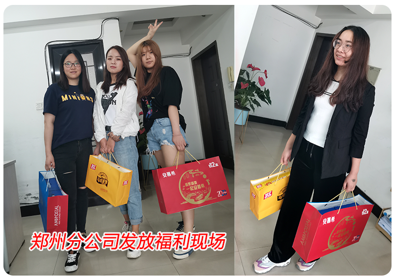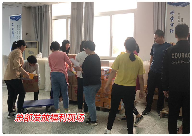 发放现场异常热闹,行政人员将载满祝福的节日礼品送到每位员工手中,满满的福利让员工惊呼:“根本拿不动。”