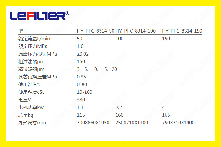 • 替代颇尔替代颇尔PFC8314-50高效滤油机