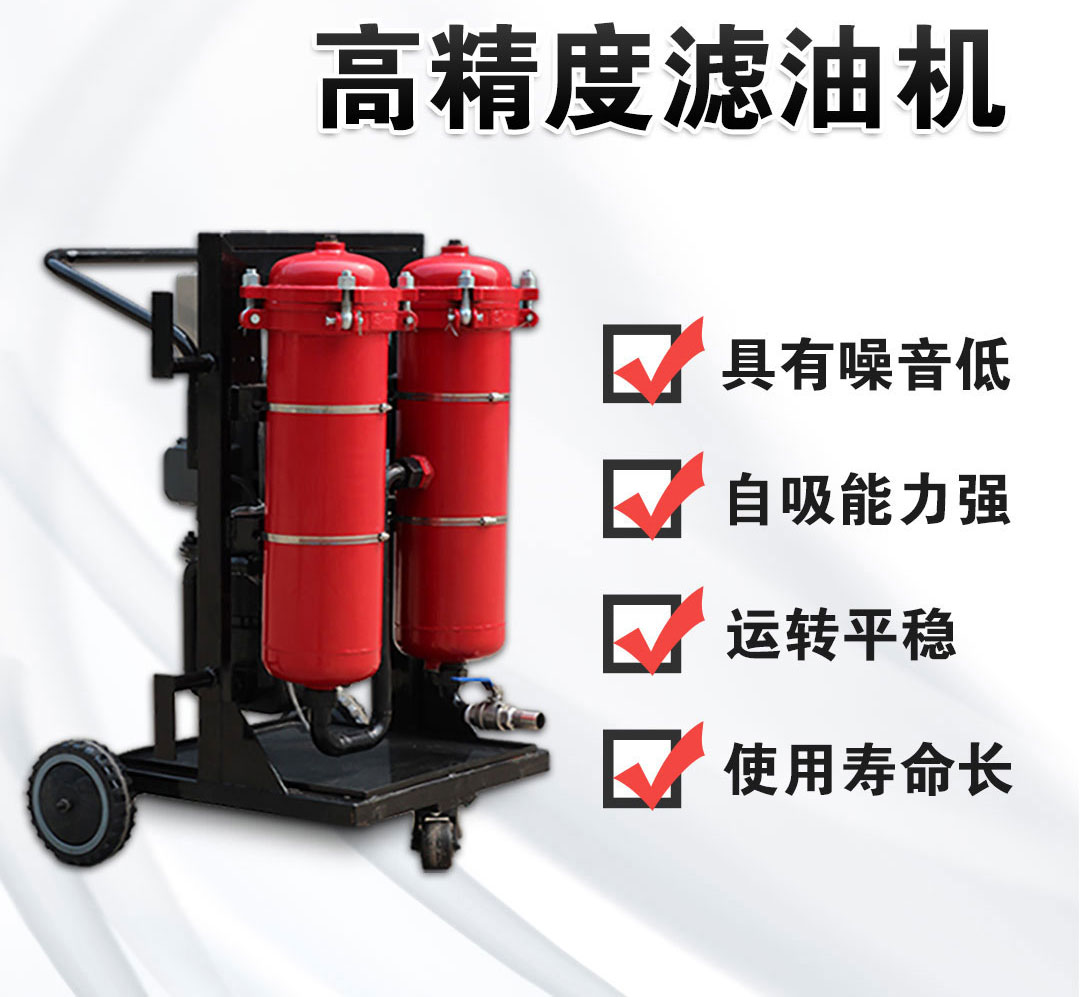 高精度滤油机主要用于系统中油液杂质的过滤,双筒的设计结构可以同时过滤更多的介质,用户可以自己选择是双筒过滤还是单筒过滤,阀门可以随着需要决定是否打开,过滤器接触介质的部位全部采用不锈钢滤材,起到很好的防锈效果。该滤油机具有具有较高的精度和低噪声,使用维护方便等优点。