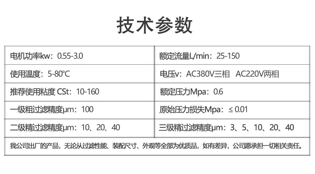 高精度滤油机技术参数:
