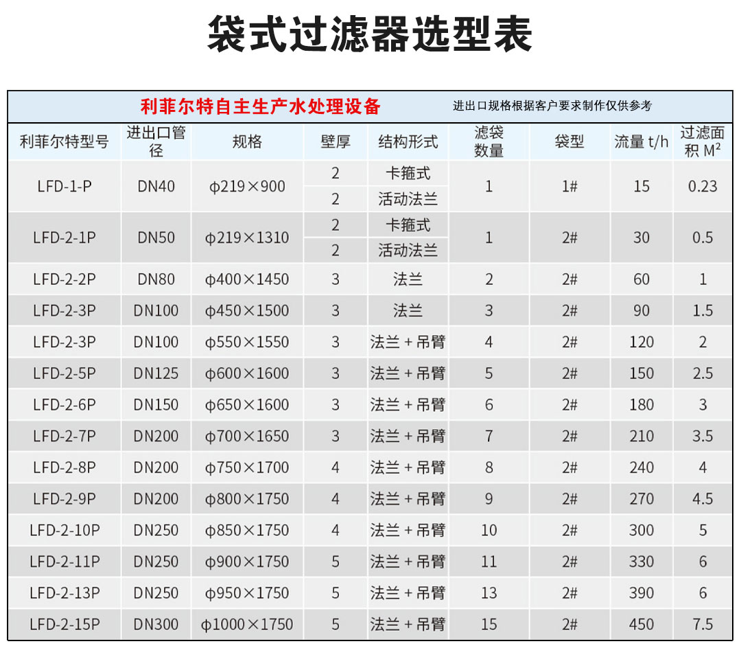 袋式过滤器技术参数: